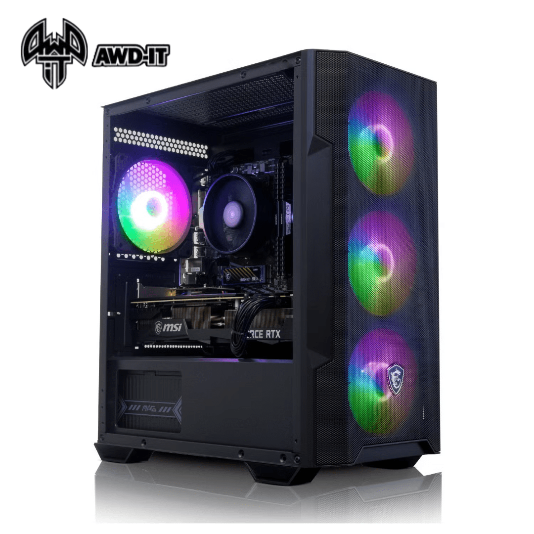 Housed in the stylish MSI M100R Tempered Glass eSports PC Gaming Case, the front mesh panel allows air to flow into the case easily via the 4x ARGB Fans, providing the best system cooling performance.