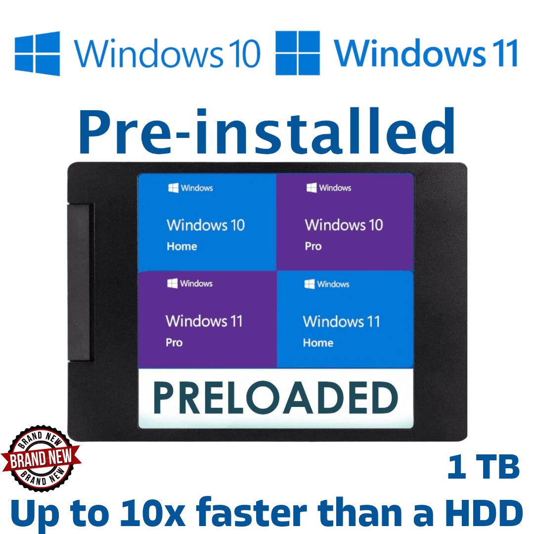 1TB 2.5″ SATA3 SSD with Windows 10 or 11 Pre-Installed – Fully Ready to Use